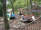 食後は、少しの時間でしたが、「森のおもちゃ箱」で遊びました。 ちょっとした登山...