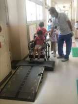 4時間目は、校舎内で、介助体験をしました。 グループごとに行いました...
