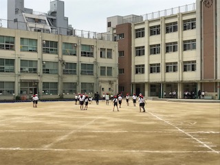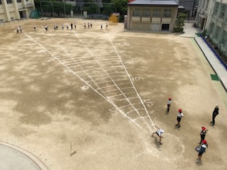 今日は、5年生がソフトボール投げとシャトルランに挑戦していました。