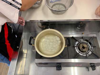今日は「白玉だんご」を作りました。4年生は初めての調理実習となりました。各班協力して、楽しみながら作っていました。