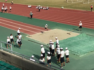 午後は第2競技場に移動して、天然芝のコートでサッカー、人工芝のコートでドッヂボールの試合をしています。いろいろな学校と交流しています。