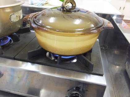 ご飯は、ガラス製の鍋を使ってお米の炊き上がる様子を確認しました。