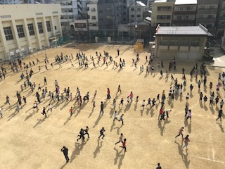 例年寒さが1番厳しいこの時期に実施しているのですが、今年は暖冬で比較的暖かい毎日です。それでも子どもたちは元気いっぱいでゴールを目指して頑張っています。