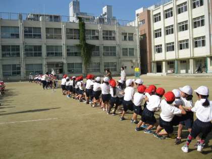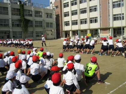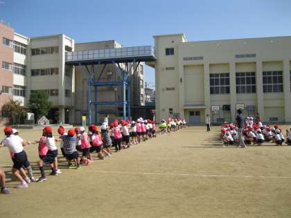 2年生と4年生の「なかよしスポーツ集会」は綱引きをしていました。それぞれの学年を二つのグループに分けて勝敗を競っていました。競技している人も応援している人も力いっぱい活動して楽しんでいました。