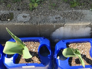 1年生が育てているチューリップもつぼみが見えてきた鉢もあります。