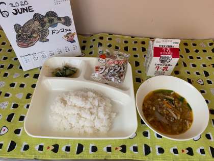 今日の給食は、マーボーはるさめ、チンゲンサイともやしの甘酢あえ、アーモンドフィッシュ、ごはん、牛乳でした。