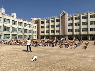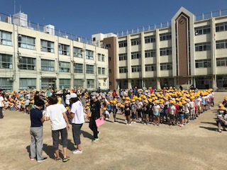 運動場に全員が集まるのも初めてでしたが、ソーシャルディスタンスを意識して、並ぶ事ができました。