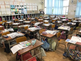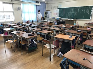 学校でも、訓練放送に合わせて、身を守る行動をとりました。その後の大津波警報発令の想定では、その時に避難する教室の確認をしました。