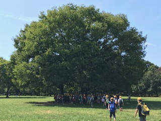 みんなが入れるような大きな木陰に荷物を置いて、グループごとにオリエンテーリングに出発します。