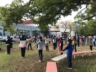 ラジオ体操で気持ちいい空気をいっぱい吸い込んで、めを覚ましています。