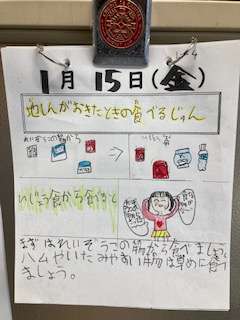 今日の防災カレンダーは「地震がおきたときの食べるじゅん」についてです。