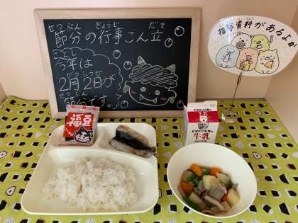立春の前日が節分で、今年は節分が2月2日です。明日は、ご家庭で恵方巻きを食べたり、豆まきをしたりして、節分を楽しんでもらえたらなと思います。