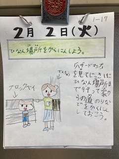 今日の防災カレンダーは「ひなん場所をかくにんしよう」です。