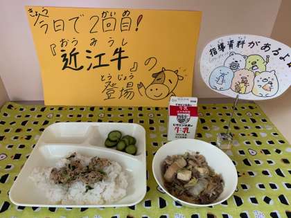 今日のすき焼き煮には、2回目の近江牛が登場しました。1月の近江牛のカレーライスがとても好評で、今回は食べる前から「よっしゃ!今日も近江牛や!」とみんな喜んでいました。