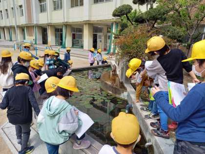 生き物をさがそう(3年理科) (4月14日) 公開日 2021/04/14 更新日 2021/04/14 お知らせ 3年生の理科の最初の単元は「生き物をさがそう」です。 身の回りの生き物を探して、その形やつくり、まわりの環境などを観察しながら、「生き物」について関心を持ち、理解を深めていきます。 今日は校庭の花壇や池を観察し、どんな生き物がいるのかを観察しましたよ。 いいね(0)