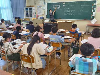 これまでは分度器を使って角の大きさを測る練習をしてきましたが、次は「60°」「120°」といったように、角の作図を分度器を使って練習しています。