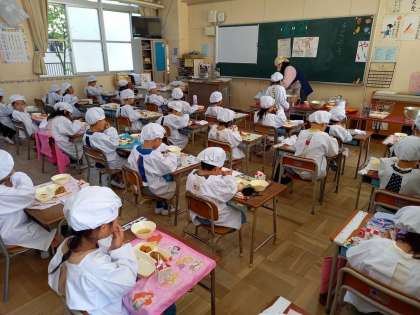「給食おいしいね!」(1年) (4月20日) 公開日 2021/04/20 更新日 2021/04/20 お知らせ 小学校での給食にもすっかり慣れてきた1年生。 毎年1年生を迎えると、 「しっかり給食食べられるかな…」 と、先生方は心配するのですが、今年の1年生はお残しも少なく、しっかり給食を食べることができています。 健康で丈夫な体をつくっていくためにも、この調子で給食を食べていってほしいな、と思います。 いいね(0)