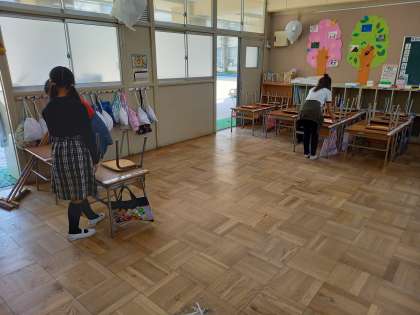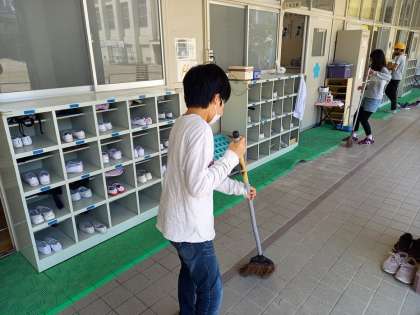 たよれる“おにいさん”“おねえさん”(6年) (4月21日) 公開日 2021/04/22 更新日 2021/04/22 お知らせ 「1年生をむかえる会」で、波除小学校の“おにいさん”“おねえさん”と対面した1年生。 なかでも、6年生の“おにいさん”“おねえさん”は給食のお手伝いに来てくれて、もうすっかり“顔なじみ”です。 給食のほかにも、1年生が帰った後の教室を、6年生が一生懸命にお掃除してくれています。 たよれる“おにいさん”“おねえさん”です! いいね(0)