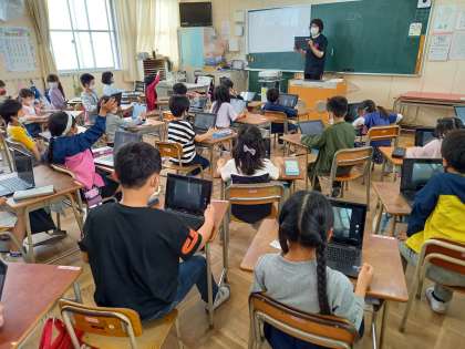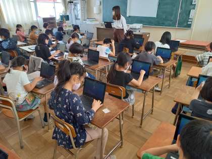 緊急事態宣言に備えて、各学年で端末の扱い方の学習が始まっています。