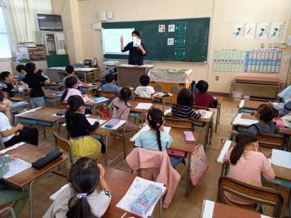 下の写真は、1年生の「ひらがな」の学習の様子です。
