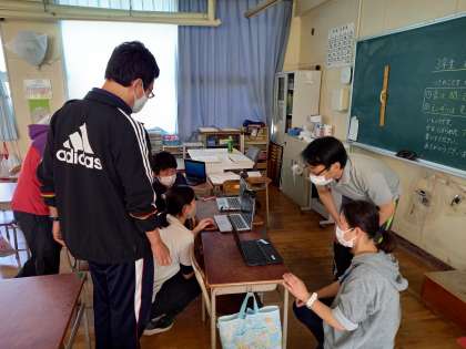今日は2年生以上の子どもたちが端末を持ち帰り、双方向通信「Teams」の接続状況を確認しています。