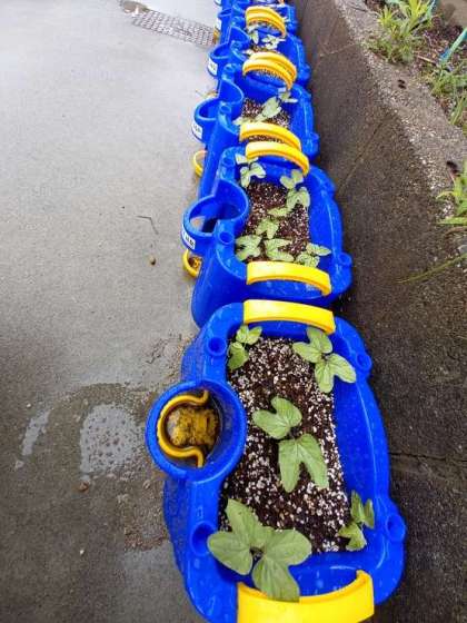 1年生の日課“あさがお”への水やりは、今日はおやすみです。