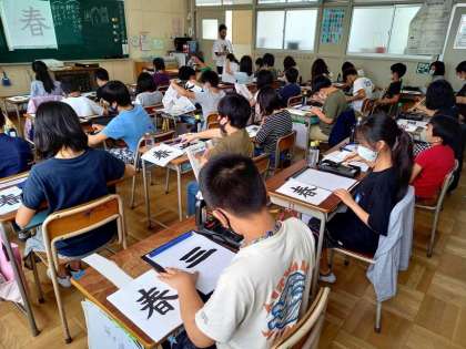 習字の時間(5年) (5月21日) 公開日 2021/05/21 更新日 2021/05/21 お知らせ 5年生は今日、3クラスそろって「習字」の学習に取り組みました。 5年生になってから初めての習字の授業ということで、準備のことから姿勢や気持ちの持ち方まで、担任の先生がていねいに説明をして、子どもたちは半紙に向かいました。 今日書く字は、「春」です。 子どもたちは書く時の姿勢もよく、立派な「春」の字を次々と書き上げていきました。 いいね(0)