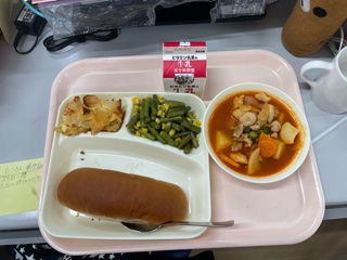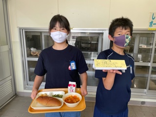 今日は給食委員会の活動を熱心に頑張る5年生が給食献立を持ってくれました。