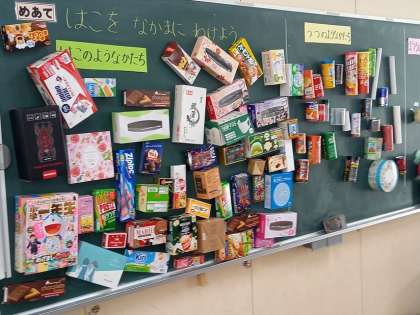 いろいろなかたち(1年算数) (5月26日) 公開日 2021/05/26 更新日 2021/05/26 お知らせ 1年生昨日に引き続き“もののかたち”の学習です。 今日は、身の回りの立体を、形の特徴によってなかまわけする学習をしました。 みんな、とても意欲的に学習することができていましたよ! いいね(0)