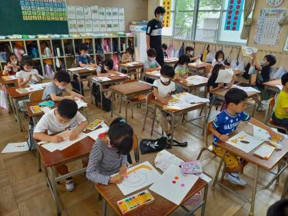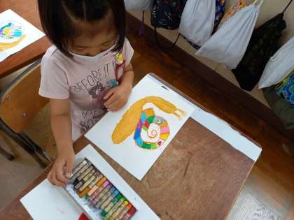 かたつむりをかこう!(1年図画工作) (6月2日) 公開日 2021/06/02 更新日 2021/06/02 お知らせ 1年生の教室をのぞくと、子どもたちが「かたつむり」の絵を描いていました。 梅雨の時期にぴったりの題材ですね! パスを使って、さまざまな色に彩られたかたつむりは、まるで夢の中に出てきそうなカラフルさで、見ているだけで心がウキウキとしてきます! 子どもたちの創造力が存分に発揮された楽しい活動の時間となりました! いいね(0)