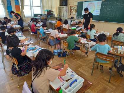 絵の具の使い方(2年図画工作) (6月3日) 公開日 2021/06/03 更新日 2021/06/03 お知らせ 先週から絵の具の使い方を学んでいる2年生。 今日は水彩絵の具を混ぜ合わせるとどのような色が作れるか、また少しずつ色を変化させるにはどのようにすればよいか、配色と水の量にも気をつけながら色の変化を楽しみながら活動に取り組むことができていました。 いいね(0)