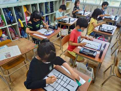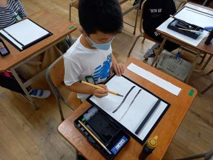 毛筆を使っての書写が始まりました(3年) (6月4日) 公開日 2021/06/04 更新日 2021/06/04 お知らせ 3年生になって、いよいよ毛筆を使った書写の学習が始まりました。 今日は毛筆の最初の授業ということで、用具の取り扱い方や、姿勢のことなど基本的なことを先生から教わったあと、毛筆の感覚を身につけるため、半紙の上にさまざまな線を書く練習をし、毛筆の運び方を練習しました。 子どもたちは毛筆で書く感触を確かめながら、生き生きとした表情で半紙に向かっていました。 いいね(0)