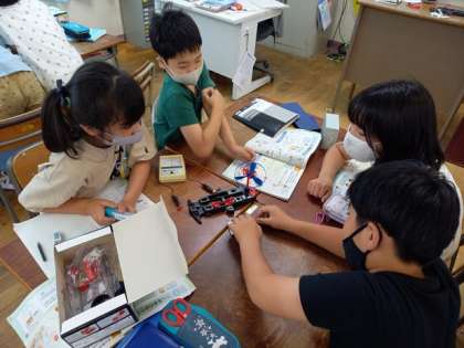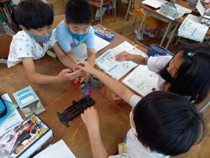 今日は各班で、乾電池につないだモーターや電流計を使って、電流の大きさや流れについて学習をしました。