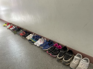 今日は、午後から耳鼻科検診がありました。履いている靴を脱いで、順に保健室に入ります。