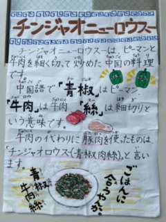 漢字で書くと「青椒牛肉絲」で、「青椒(チンジャオ)」は「ピーマン」、「絲(スー)」は「細切り」という意味です。