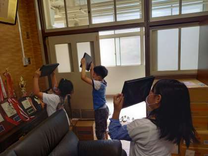 今日は校長室や職員室、体育館などをまわり、みんなが知らなさそうなものを写していきました。
