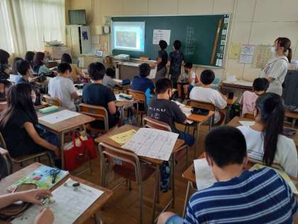 毎日を過ごしている学校の中は、どのようなところが汚れているのか、子どもたちはグループを作って調べ、端末で撮った写真をもとに、みんなの前で発表をしました。