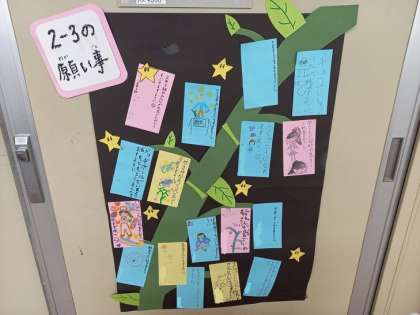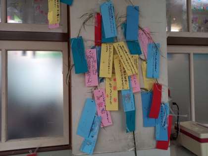 雨の七夕(7月7日) 公開日 2021/07/07 更新日 2021/07/07 お知らせ 今日は朝から雨が降り続き、水泳指導も中止になりました。 今日は7月7日、七夕の日です。 彦星と織姫が年に1回だけ会える日とされていますが、雨が降ってしまいました…。 7月7日に降る雨のことを「催涙雨」といい、年に1回の機会に会うことができなかった彦星と織姫の悲しみの涙、ともいわれています。 学校では、願いを書いた短冊があちらこちらのクラスで見られましたよ。 いいね(0)