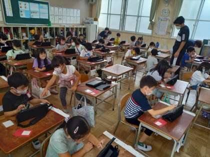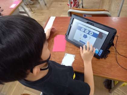 タブレットを使って(1年) (9月2日) 公開日 2021/09/02 更新日 2021/09/02 お知らせ 1年生がタブレットを使った学習に取り組みました。 各学年で取り組んでいるオンラインドリルに挑戦です。 はじめはタブレットの操作に戸惑う場面も見られましたが、先生方やICTの支援員さんに教えていただき、全員がオンラインドリルに取り組むことができました。 画面上で楽しく学べるドリルに、子どもたちは夢中に取り組んでいましたよ。 いいね(0)