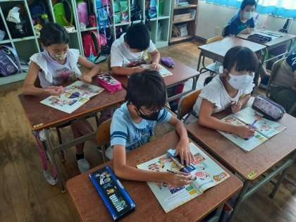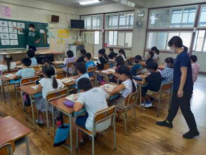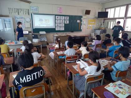 What time is it?(4年外国語活動) (9月8日) 公開日 2021/09/08 更新日 2021/09/08 お知らせ 4年生は外国語活動の時間に、時刻の表し方について学習しています。 映像資料や教科書を使い、音楽も取り入れた学習で、子どもたちは楽しく学習しています。 いいね(0)