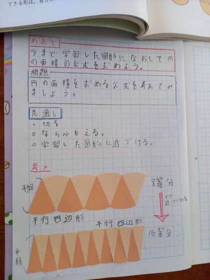 6年生は算数の時間に「円」の面積を求める公式について学習しています。