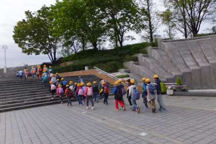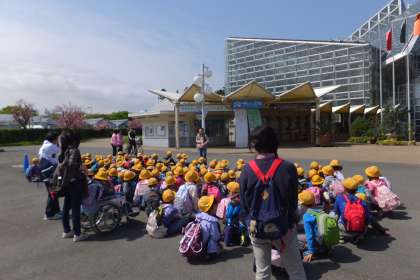全学年のトップをきって、4月17日(金)に3年生が鶴見緑地公園へ行きました。朝は、曇っていて天気を心配しましたが、だんだんと回復して、とても良い天気になりました。咲くやこの花館や芝生広場で自然観察をした後、みんなでお弁当を食べました。仲の良い友だちと一緒に楽しそうに食べていました。また、歩き方や話の聞き方の約束もきちんと守れていました。みんなの笑顔がとっても印象的な遠足でした。