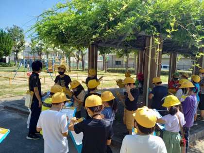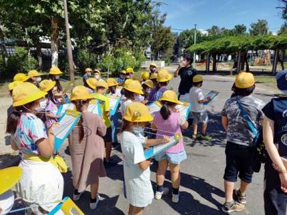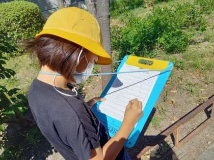 抱月公園を調べよう(3年総合) (10月5日) 公開日 2021/10/05 更新日 2021/10/05 お知らせ 3年生は総合的な学習で地域のことについて学習をしていきます。 今日は、子どもたちもよく利用する公園について調べました。ふだん子どもたちの遊び場ともなっている公園ですが、注意深く公園の設備や様子を見てみると、今まで気づかなかったことをいくつも発見することができました。 今日は校区内ではありますが、久しぶりに校外での活動となりました。 いいね(0)
