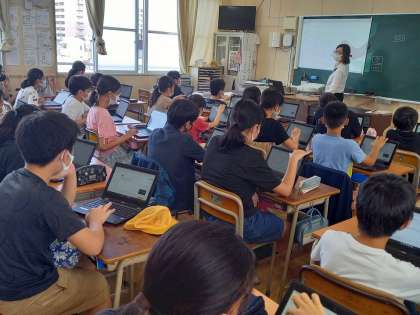 修学旅行のことを調べているので、子どもたちも楽しそうに端末操作に取り組んでいます。