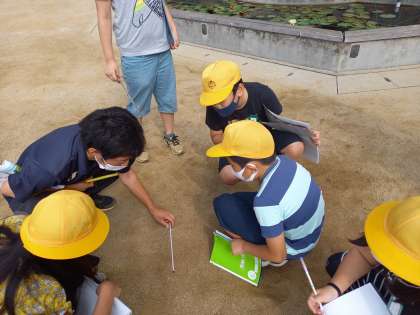 日なたと日かげの地面(3年理科) (10月8日) 公開日 2021/10/08 更新日 2021/10/08 お知らせ 理科の時間に「かげと太陽」の学習をしている3年生。 今日は、日なたと日かげの地面の様子がどうなっているのかを考え、実際に地面の温度はどうなっているのかを調べてみました。 10月とはいえ、日中は暑い日が続いています。 地面近くの温度は30度を超えていました。 いいね(0)