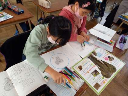どうぶつのひみつをさぐろう(2年国語) (10月27日) 公開日 2021/10/27 更新日 2021/10/27 お知らせ 国語の時間に「ビーバーの大工事」の学習をした2年生。 授業では“ビーバー”の特性について、文章から読み取りを行いましたが、今度は自分が調べたい動物を一つ選んで、学習したことをもとにその“特性”をまとめていきます。 いいね(0)