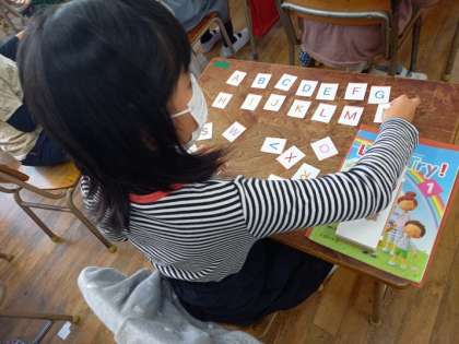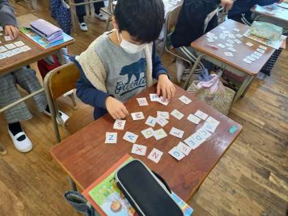 ALPHABET(3年外国語活動) (11月1日) 公開日 2021/11/02 更新日 2021/11/02 お知らせ 3年生の外国語活動の様子です。 これまで「聞く」「話す」ことを中心に学習を進めてきましたが、いよいよ「アルファベット」の学習が始まりました。 「アルファベット」に慣れる学習からスタートし、アルファベットを使った単語や文章を見ながら学んでいく学習も入ってきます。 いいね(0)