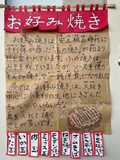 お好み焼きの起源は、安土桃山時代に千利休が作った「麩(ふ)の焼き」だそうです。その後、大正から昭和にかけてみその代わりにウスターソースを使用する「もんじゃ焼き」や「一銭洋食」になっていきました。