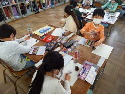 あきのおもちゃをつくろう(1年生活科) (11月15日) 公開日 2021/11/15 更新日 2021/11/15 お知らせ “あきさがし”でたくさんの葉っぱやどんぐりを集めた1年生。 それらを使って、さまざまな“あきのおもちゃ”を作っています。 松ぼっくりを使った“けん玉”やどんぐりを使った“こま”に“マラカス”など、工夫を凝らした“あきのおもちゃ”が次々に出来上がっきています。 いいね(0)