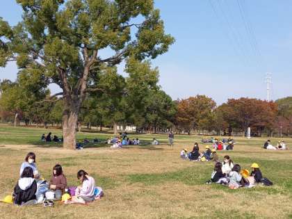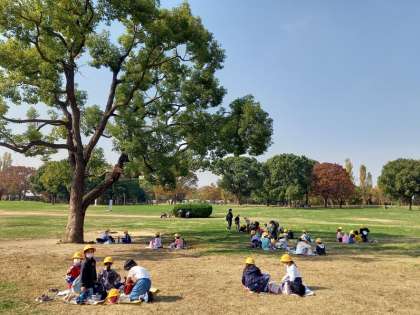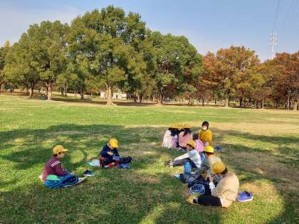 お待ちかね、お弁当の時間です! 広い芝生の上で食べるお昼ご飯は最高!